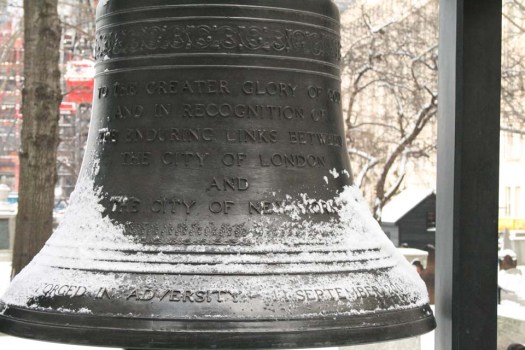 The memorial inside the church moved visitors to tears. You can read how the church served as a center for rescue workers. Photography is prohibited, out of respect for the deceased, but the images are still etched in my mind. Photos of this horrific event juxtaposition next to those of people who died and rescue workers who gave selflessly to help. This is the Liberty Bell that still hangs in front of the church.