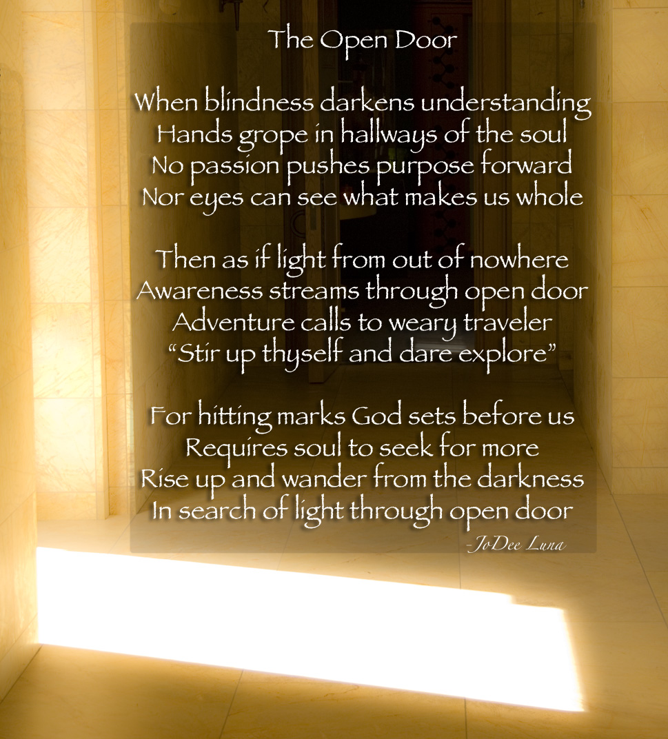 As I age, I also realize that I cannot chase out the darkness in my soul, but I can arise and walk towards the open door.