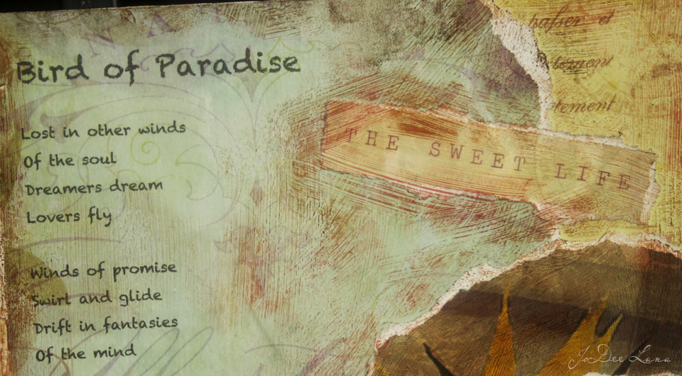Then yesterday I decided to finish some mixed media pieces. During the process of working with a piece I’d titled “Bird of Paradise,” I surrendered.