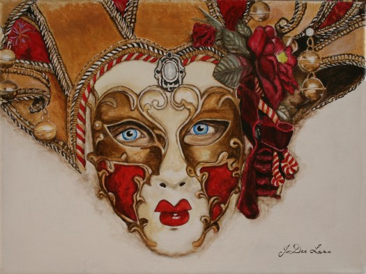 I started by painting the top parts of the mask and thoroughly enjoyed the challenge. Today I realized how far the project has come. Here’s a photo of the painting in the early stages.
