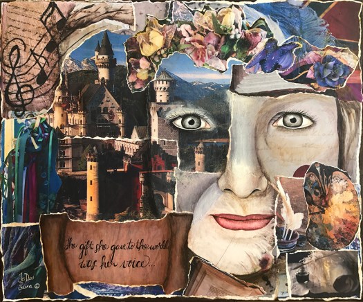 Voice is a mixed media portrait commissioned by Krista Thomsen to honor her mother, Bonnie Ribble Kennedy.