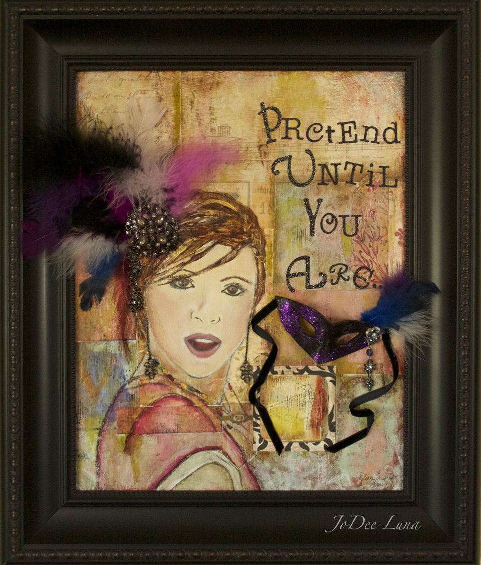 I titled this mixed media collage piece “Pretend Until you Are” because that’s how I felt as an inexperienced mixed media collage artist...like I was pretending.