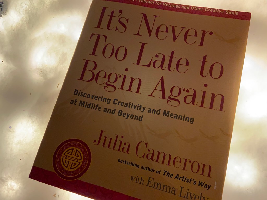 I’m returning to writing by beginning a book by Julia Cameron, It’s Never Too Late to Begin Again: Discovering Creativity and Meaning at Midlife and Beyond. Julia was the author who launched my passion for the craft when I read The Right to Write many years ago. Her practice of “Morning Pages” formed a daily connection between me and writing that resulted in several manuscripts yet to find their way into books.