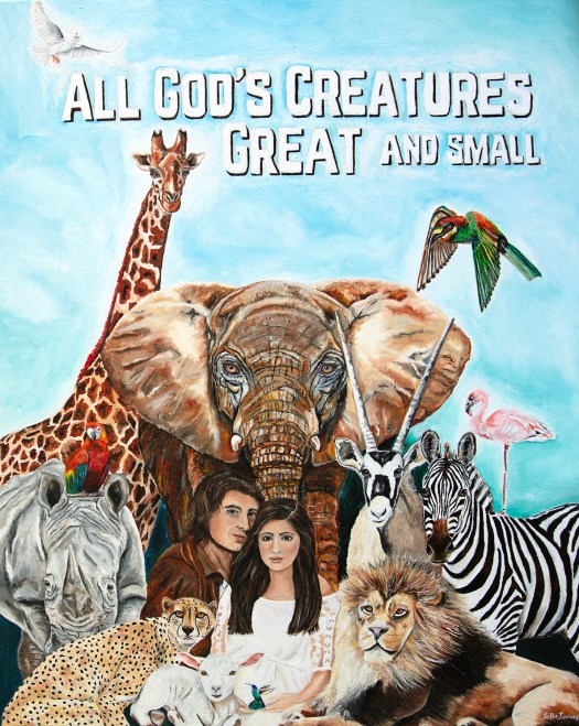 From the tall the giraffe and ominous elephant to the tiny hummingbird and baby in the woman’s womb, all are God’s creatures.