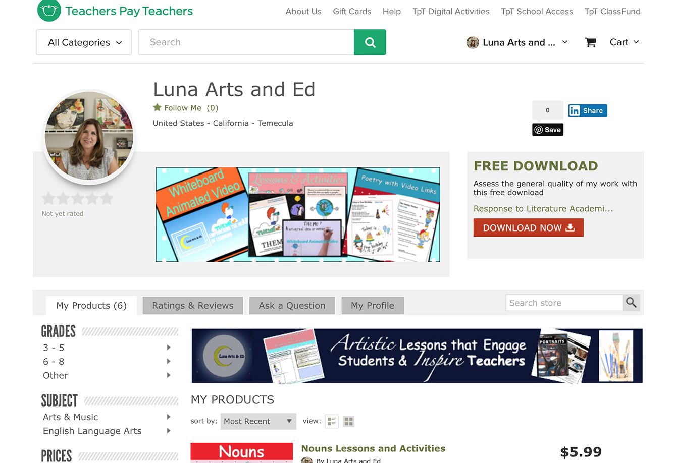 Creative Teaching Resources on Luna Arts and Ed TPT Store